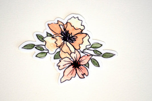 Watercolor Flower Sticker Set - Set of 3 Stickers - Vinyl Stickers - Waterproof Decals