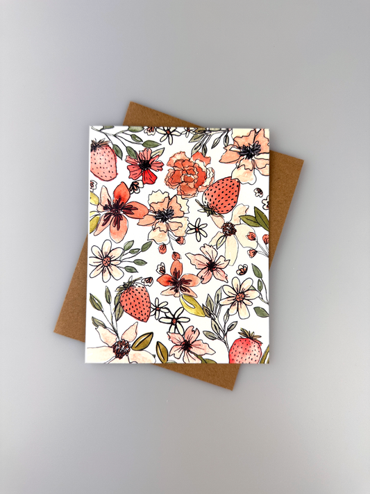 Tea Time Florals Card - Modern Floral Greeting Card - Cute Card - All Occassion Card with Envelope