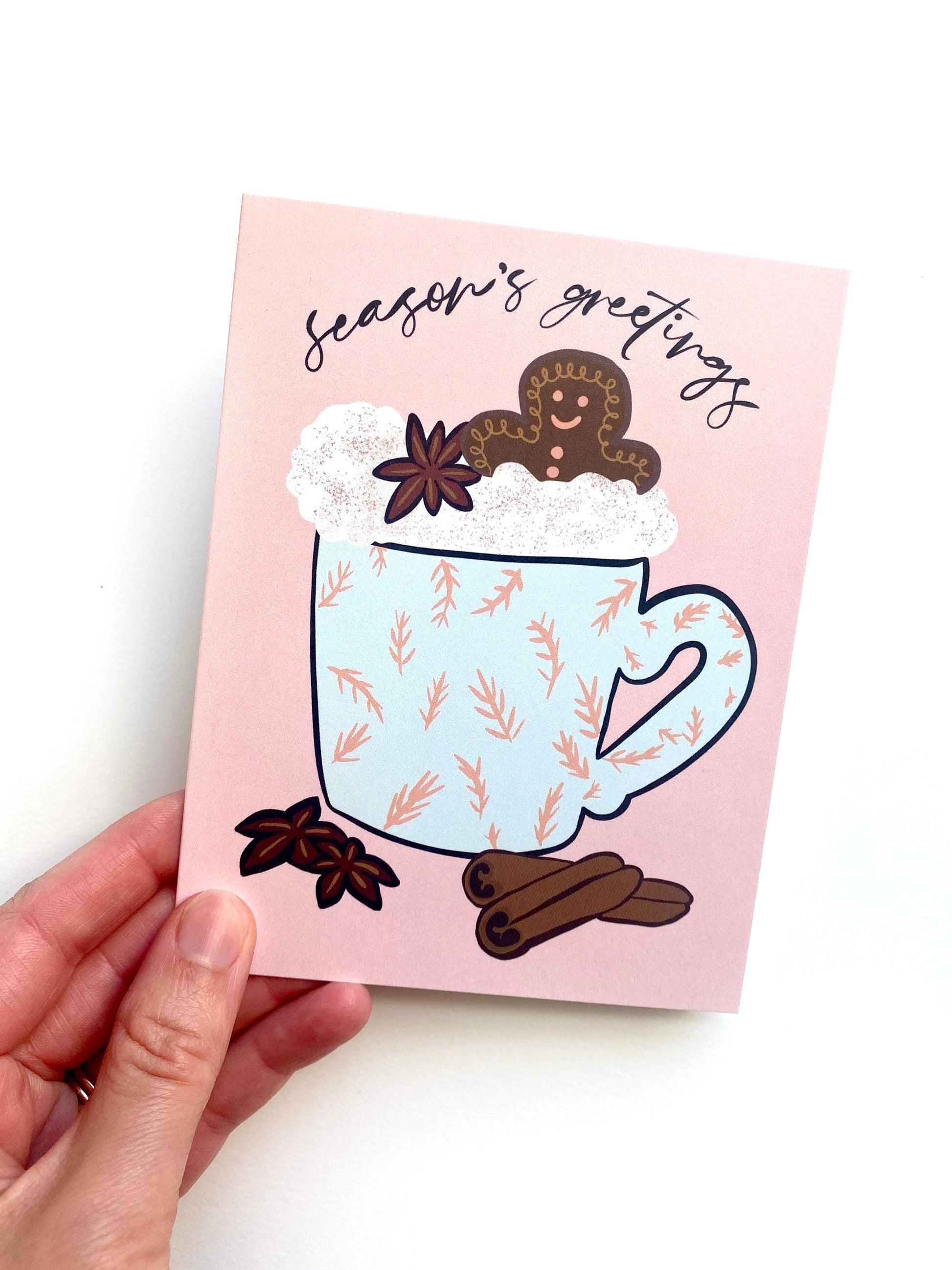 Gingerbread Season's Greetings Card - Modern Christmas Card - Eco-friendly Card with Kraft Envelope - Blank Inside