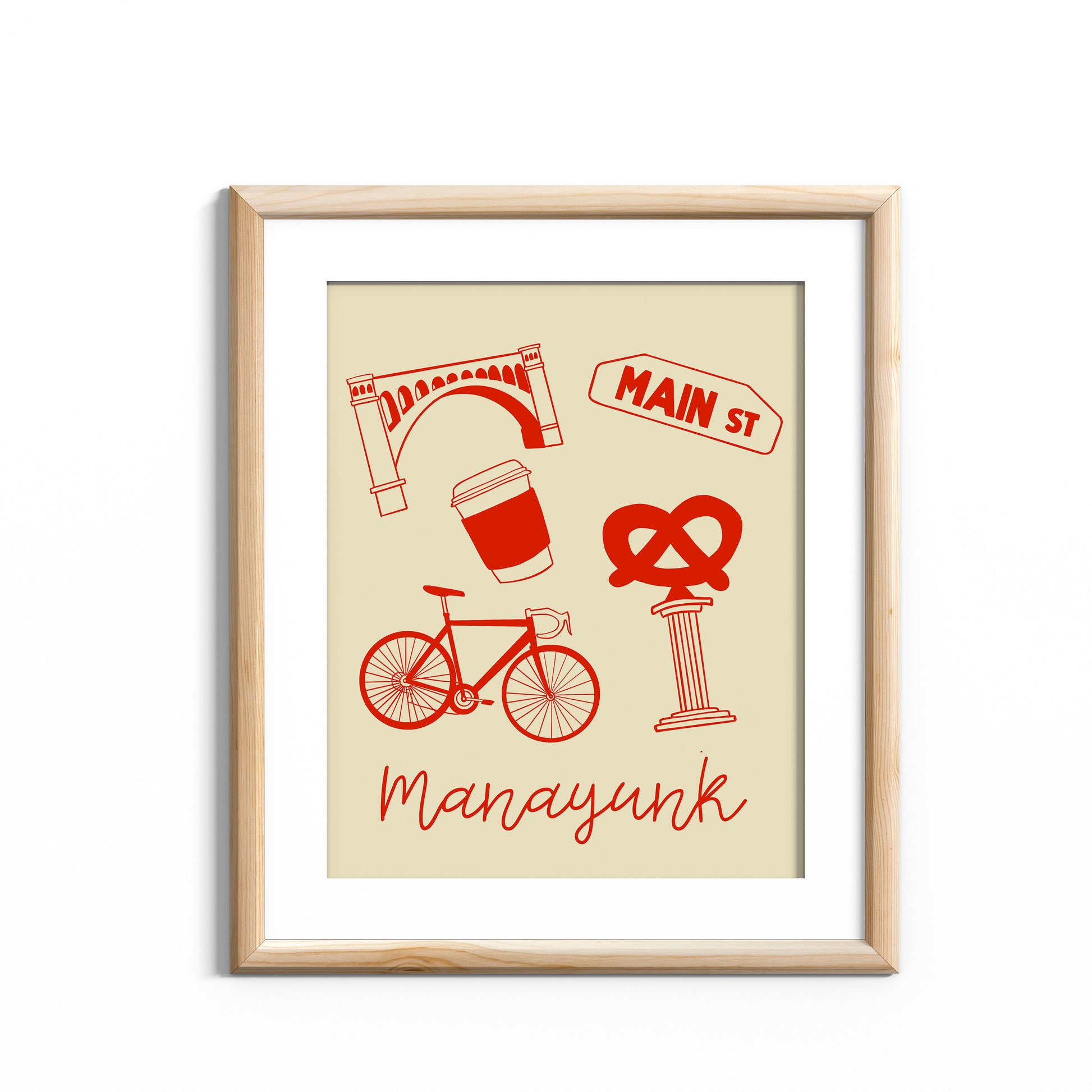 This adorably illustrated art print is perfect for the born and bread 'yunker, Manayunk transplant, or for anyone who just loves and appreciates the Manayunk and Roxborough neighborhoods of Philly! The vivid colors in this print will make any room pop. Perfect for home decor or as a gift to a Philadelphian!