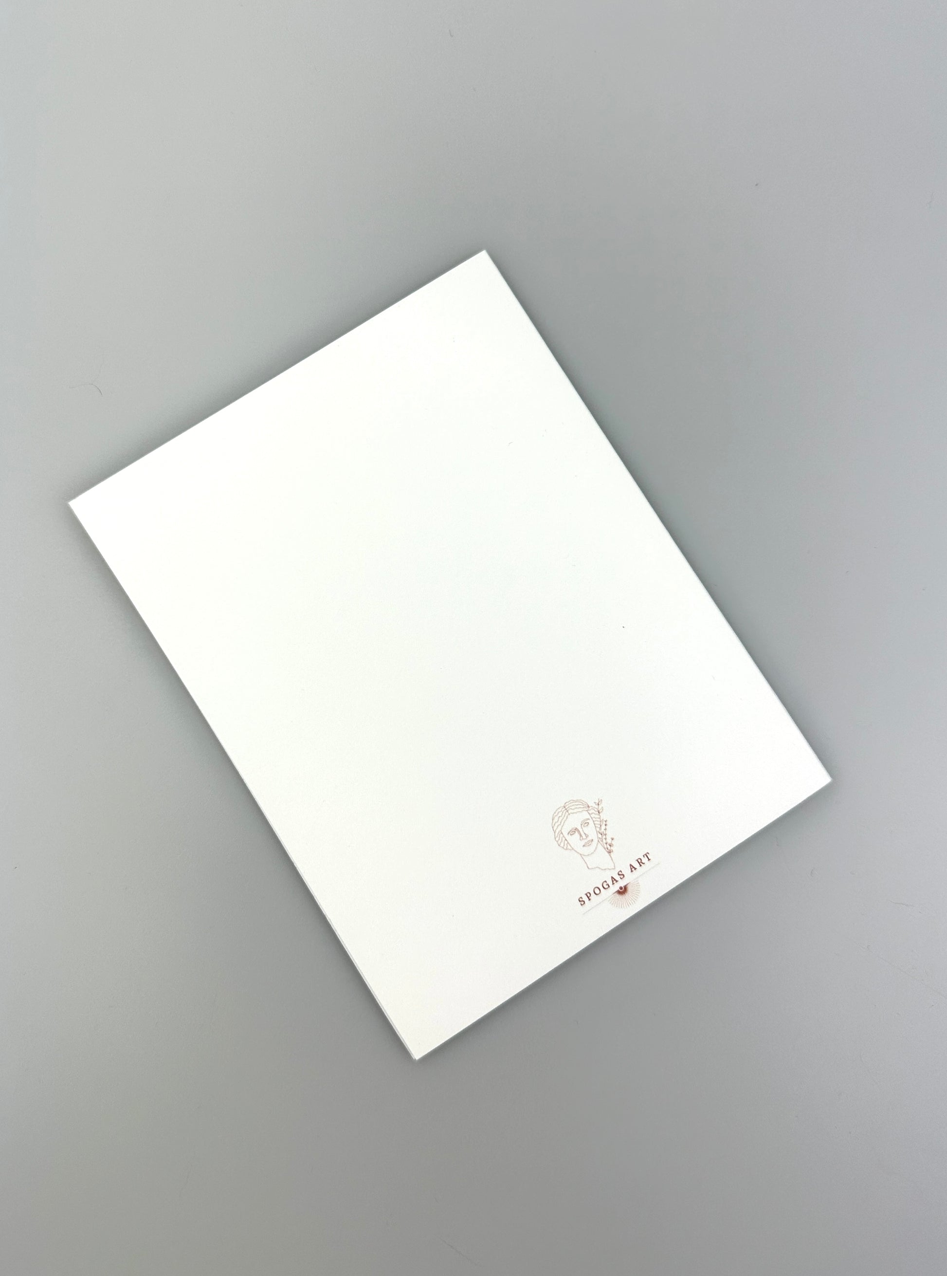 SIZE: 4.25" x 5.5". Printed on thick, 120 lb paper with a matte finish.